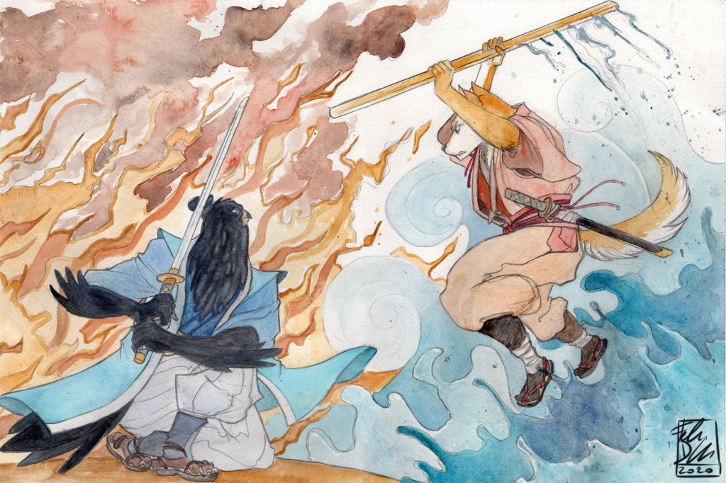 #Samurai #Storico #Giappone #Animali #Antropomorfi #DoppiaLettura #Acquerello