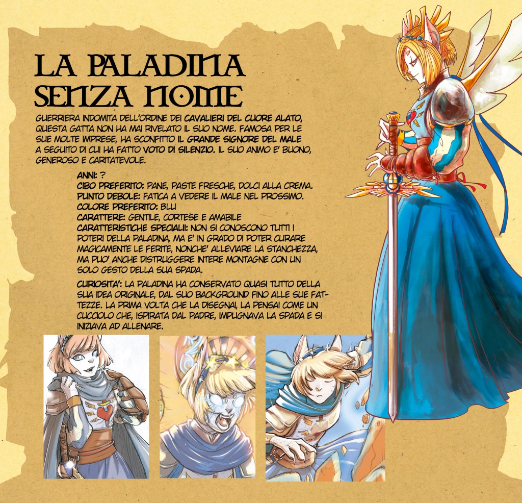 In un mondo dove i personaggi sono tutti gatti antropomorfi, le lande sono percorse da intrepidi avventurieri, cartografi ed eroi leggendari. Tra tutti, la più famosa è senz’altro La Paladina Senza Nome, eroina leggendaria che sconfisse il Signore del Male più di dieci anni orsono.